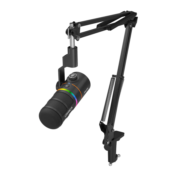 COMICA EJOY D10 es un micrófono dinámico de gran diafragma con patrón cardioide, pensado para voz con buena aislación y reducción de ruido, ideal para streaming, llamadas y grabación en entornos no tratados. Ofrece salidas XLR y USB-C para máxima compatibilidad, grabación en 48 kHz/24-bit con tarjeta de sonido integrada, y controles directos para ganancia, monitoreo y mute, sumando ecualización seleccionable y efectos de iluminación.