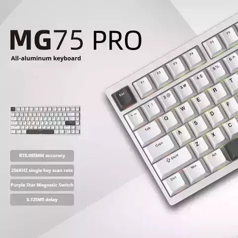IROK MG75 Pro es un teclado compacto de 81 teclas (ANSI en inglés) con switches magnéticos Hall Effect hot-swap en todas las teclas, diseñado para conexión cableada por USB-C y compatible con Windows/macOS, con RGB y un cuerpo sólido de 1,1 kg.